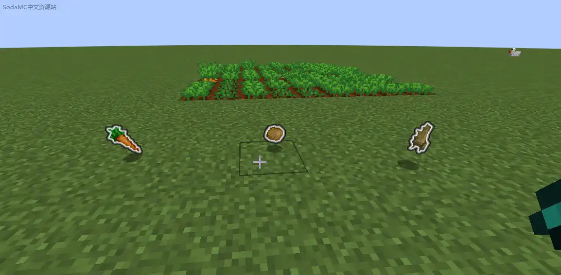当你使用钻石锄头敲击方块时,掉落的作物会被高亮显示,发出发光效果。