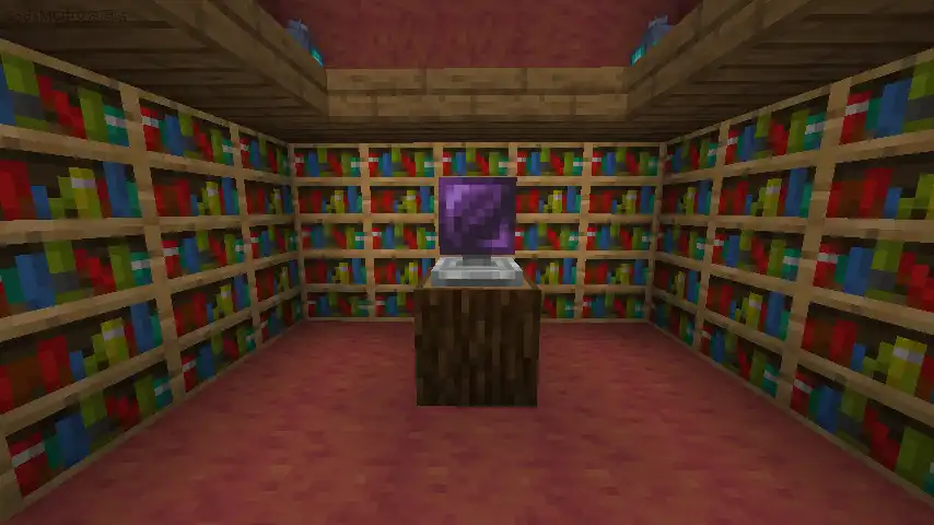 - Bookshelves can now be placed an extra block away from the enchanting table