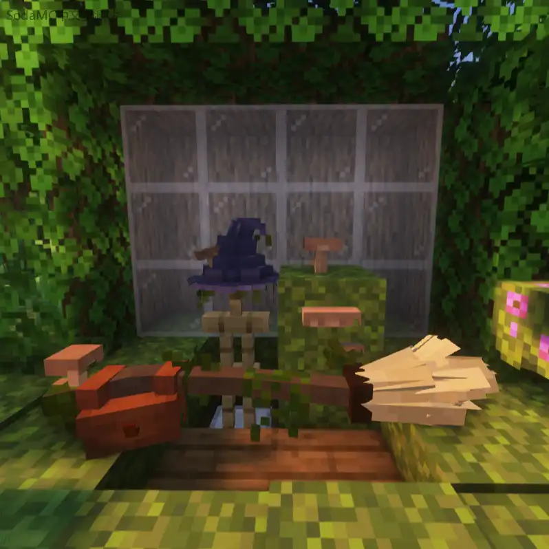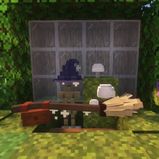 Adds Starry Broom, Bagged Starry Broom, Witch Hat, Basic Witch Hat, Rounded Witch Hat, Overgrown Witch Hat, Starry Witch, Flat Mushroom Potion, Oyster Mushroom Potion, Pine Mushroom Potion, Russula Mushroom Potion, Puffball Mushroom Potion, and a Pyrophilous Mushroom Stew