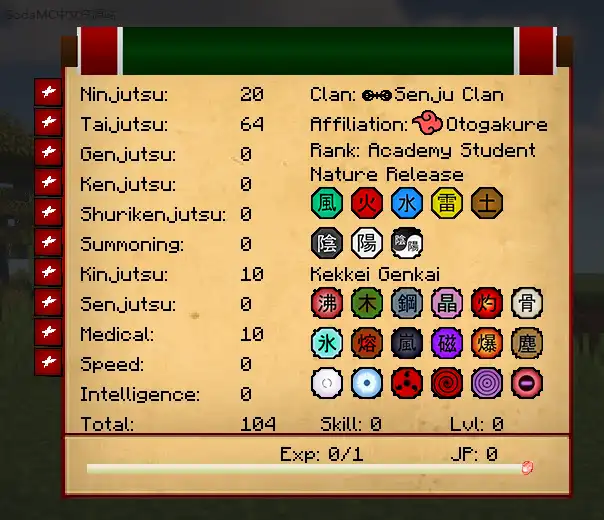 - Added a new item: Blood with DNA. Thanks to this item you can obtain new elements, or kekkei genkai. Can be found in chests and dropped from Zombies and Uchiha Shinobi.