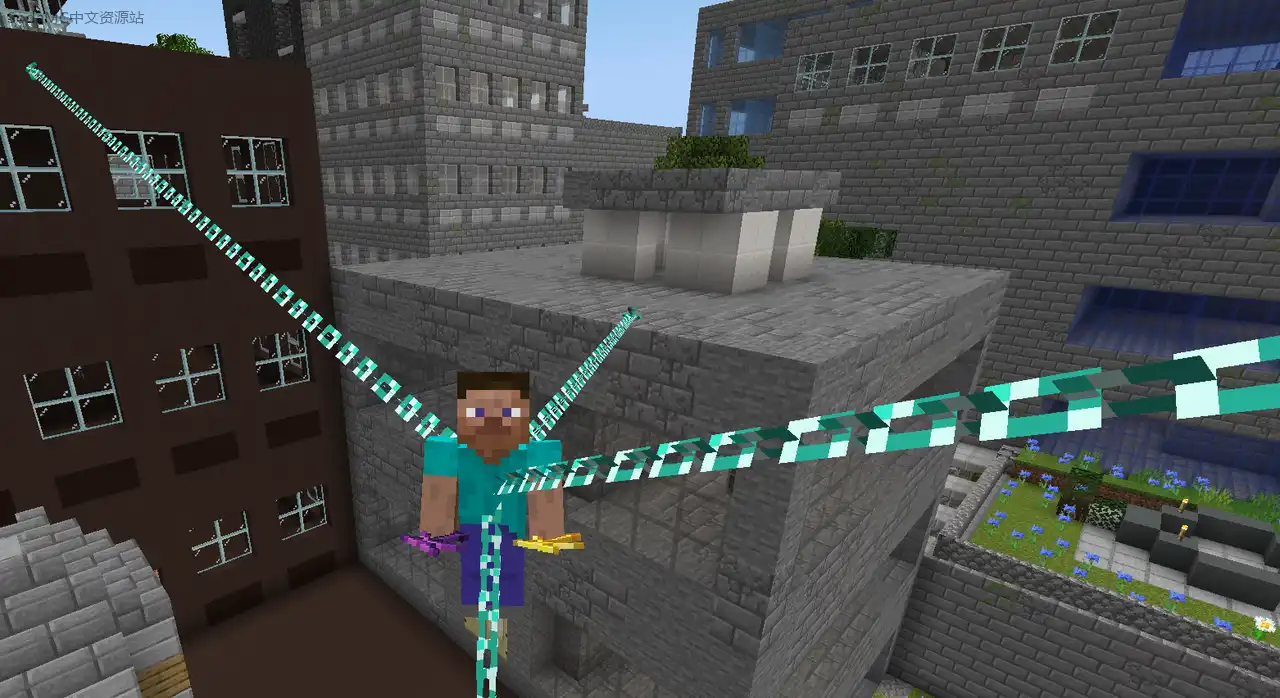 - 多种钩爪:提供多个钩爪,每个都有独特的属性。大多数钩爪用于快速移动,部分钩爪提供有限制的创造飞行能力。