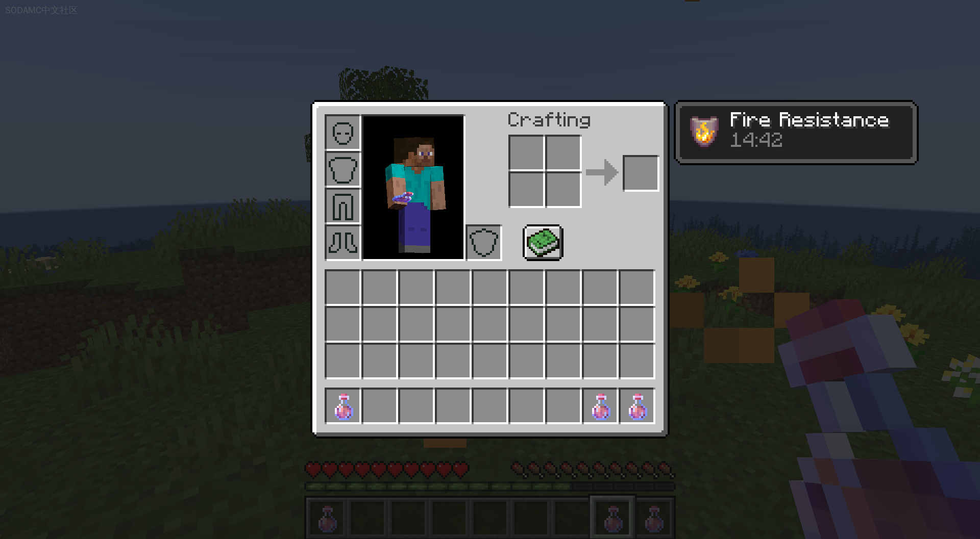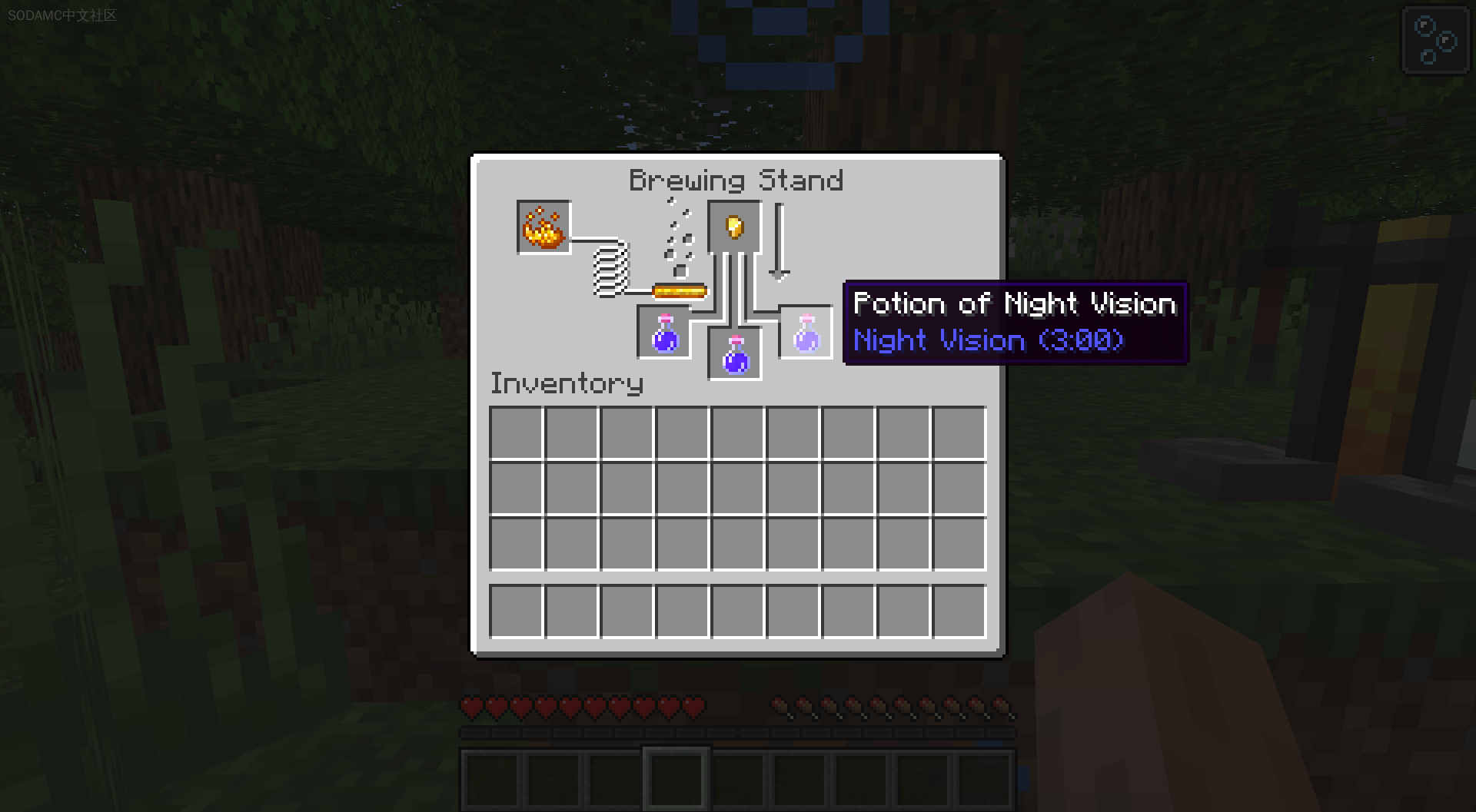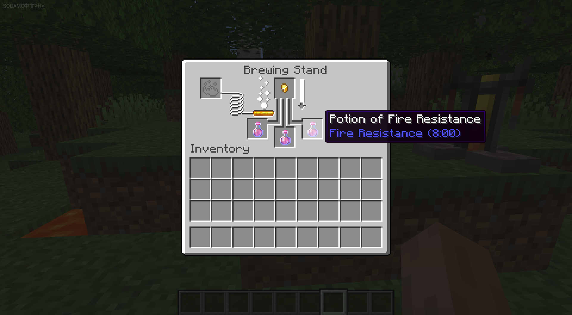首先,制作一个拥有最大常规时间的药水:8:00(使用红石酿造)。