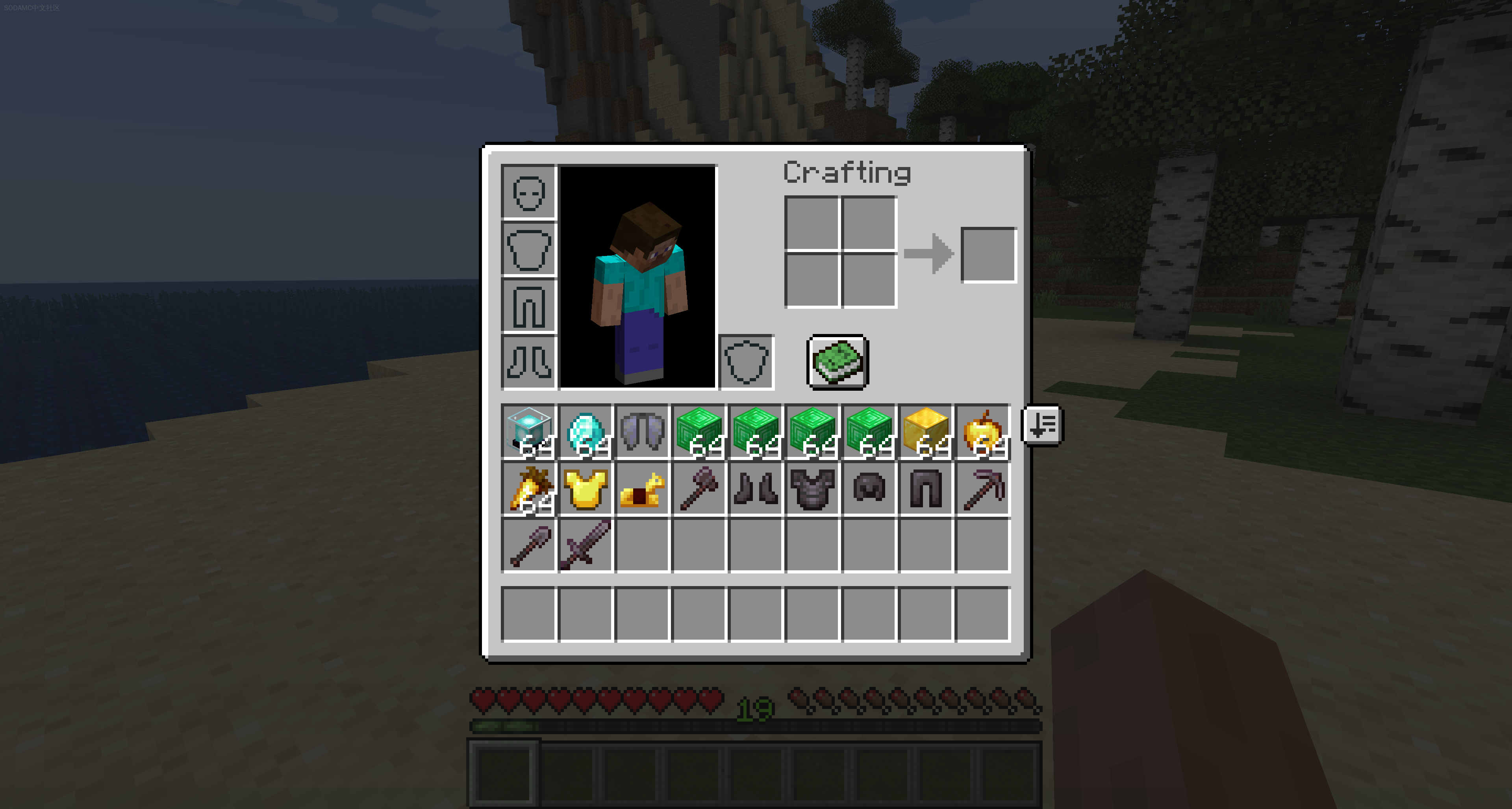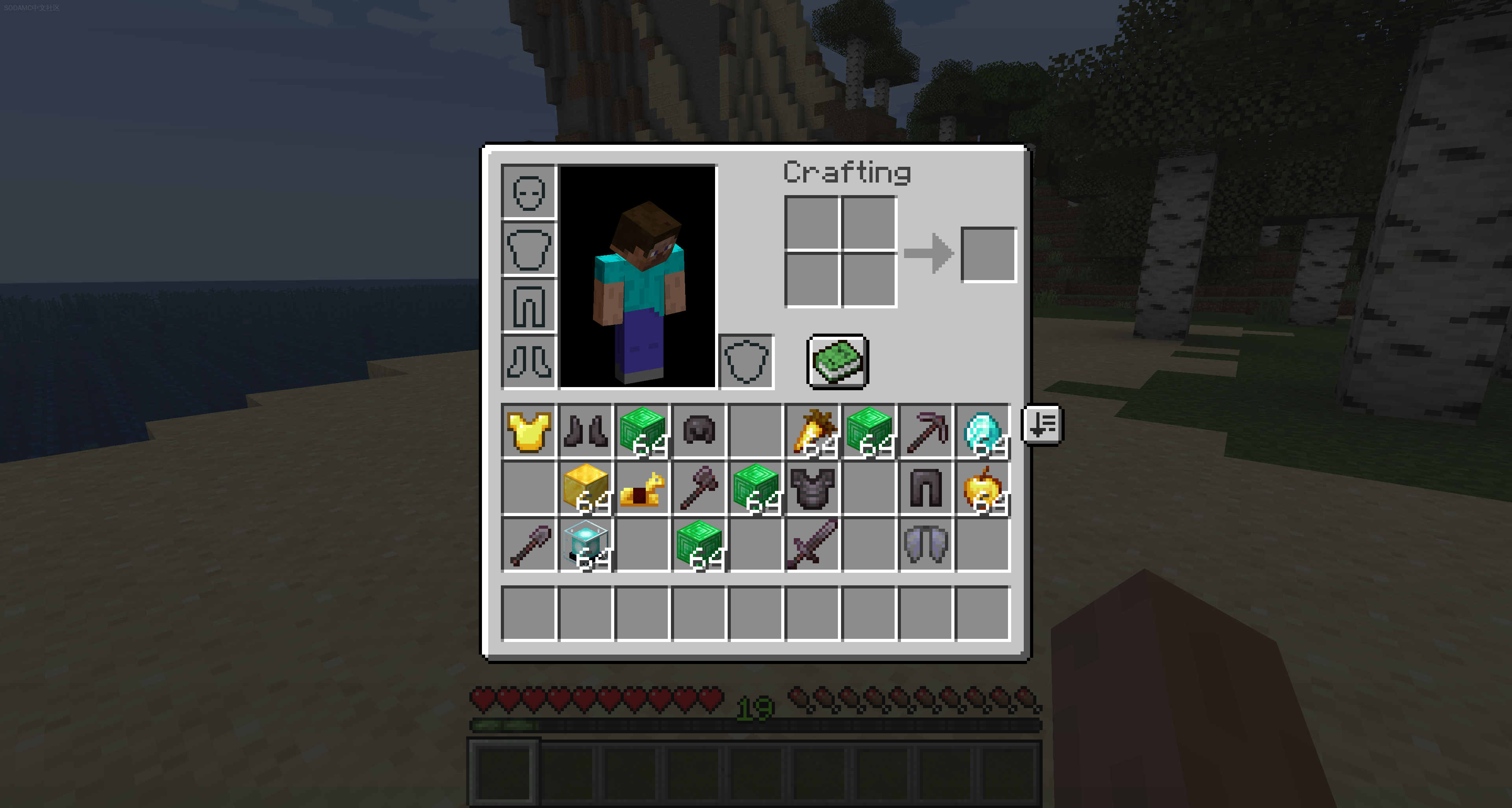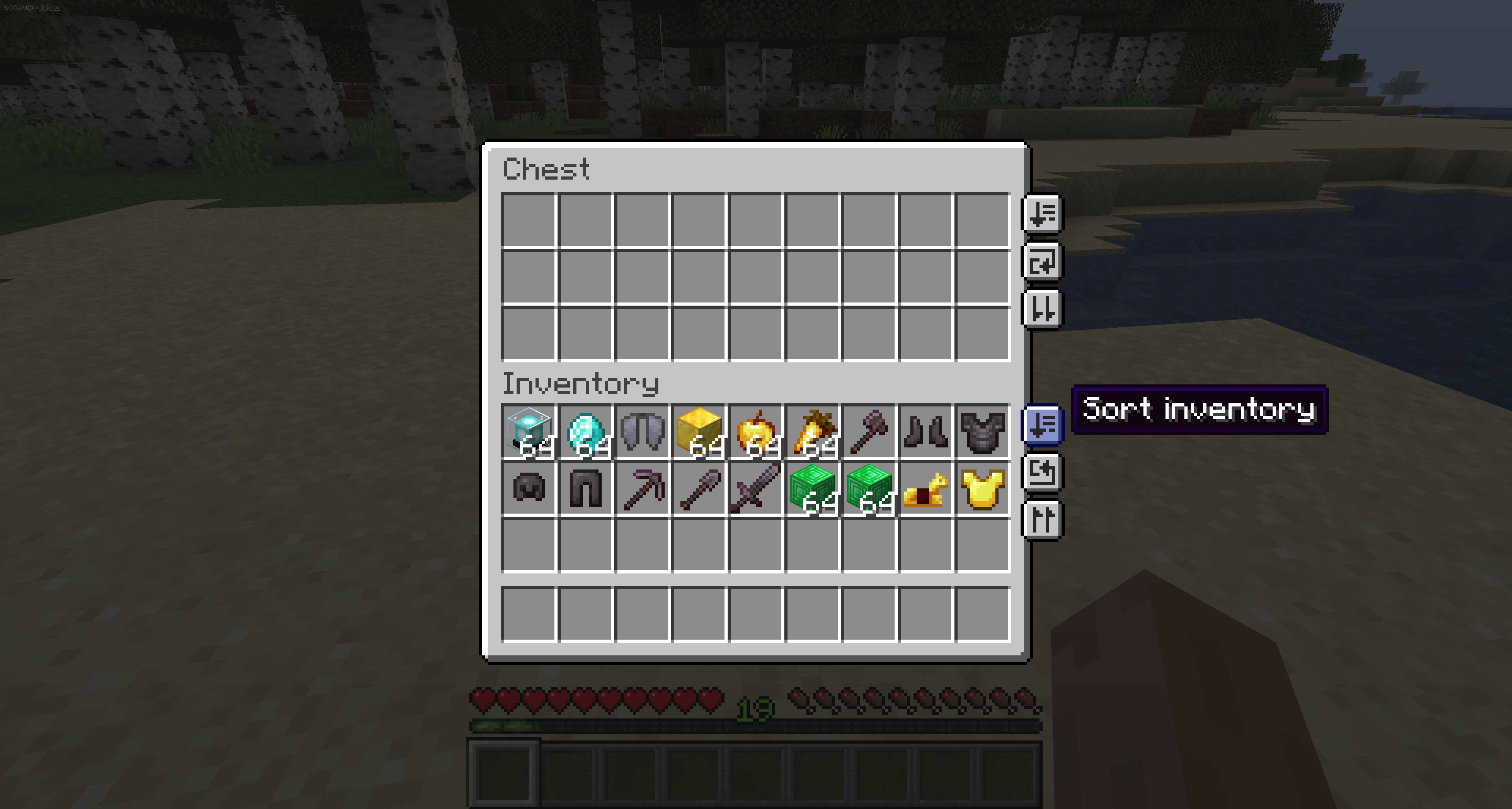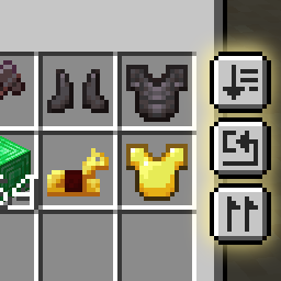 在所有容器(足够大的)和您的库存中现在会出现一个排序按钮。点击此按钮将自动对库存进行排序!在大多数情况下,此排序是按字母顺序进行的,但也有一些手动输入的例外。排序会忽略您的快捷栏,因此您不必担心它会搞乱您的主要物品!