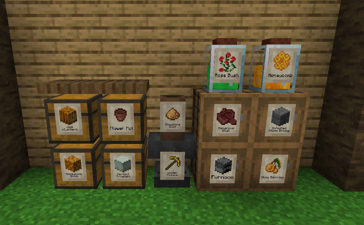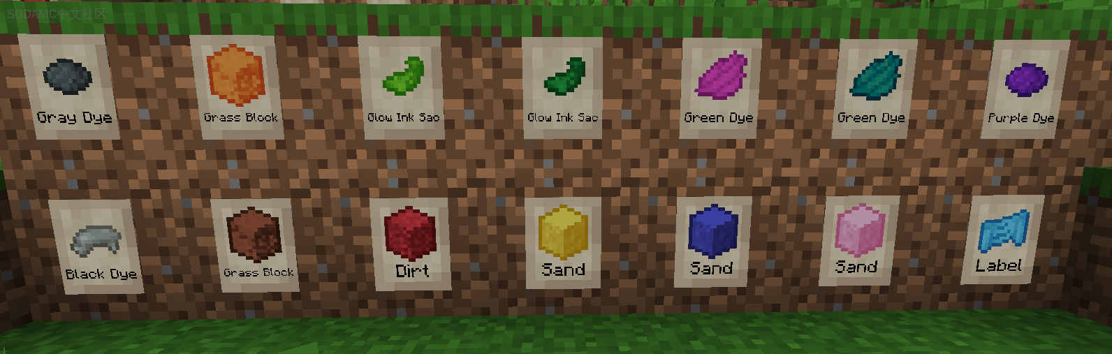 - 标签类似于物品框,但可以适应所有表面,并可以物理连接到任何形状的固体方块。