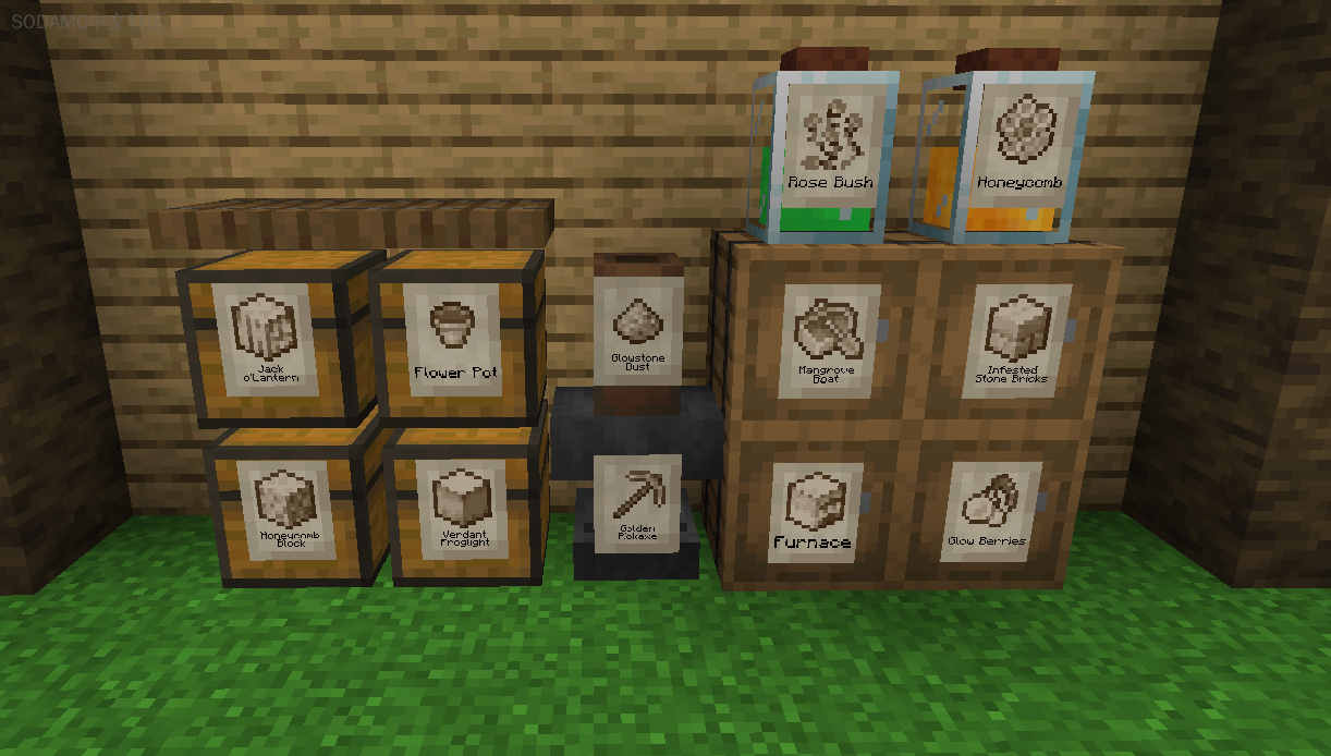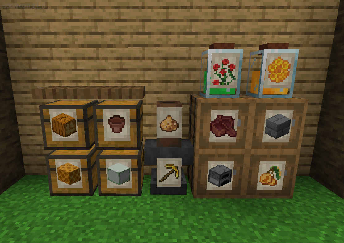 - 标签显示的图像像素化并着色,以更好地适应Minecraft风格。 这对任何物品都能无缝运行。