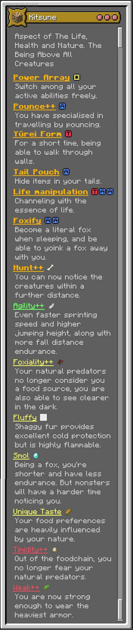 2. Added 2 more karma sources for Kitsune(Requested by Dajka21): Feed animals + Tame Pets [Not working on Forge]