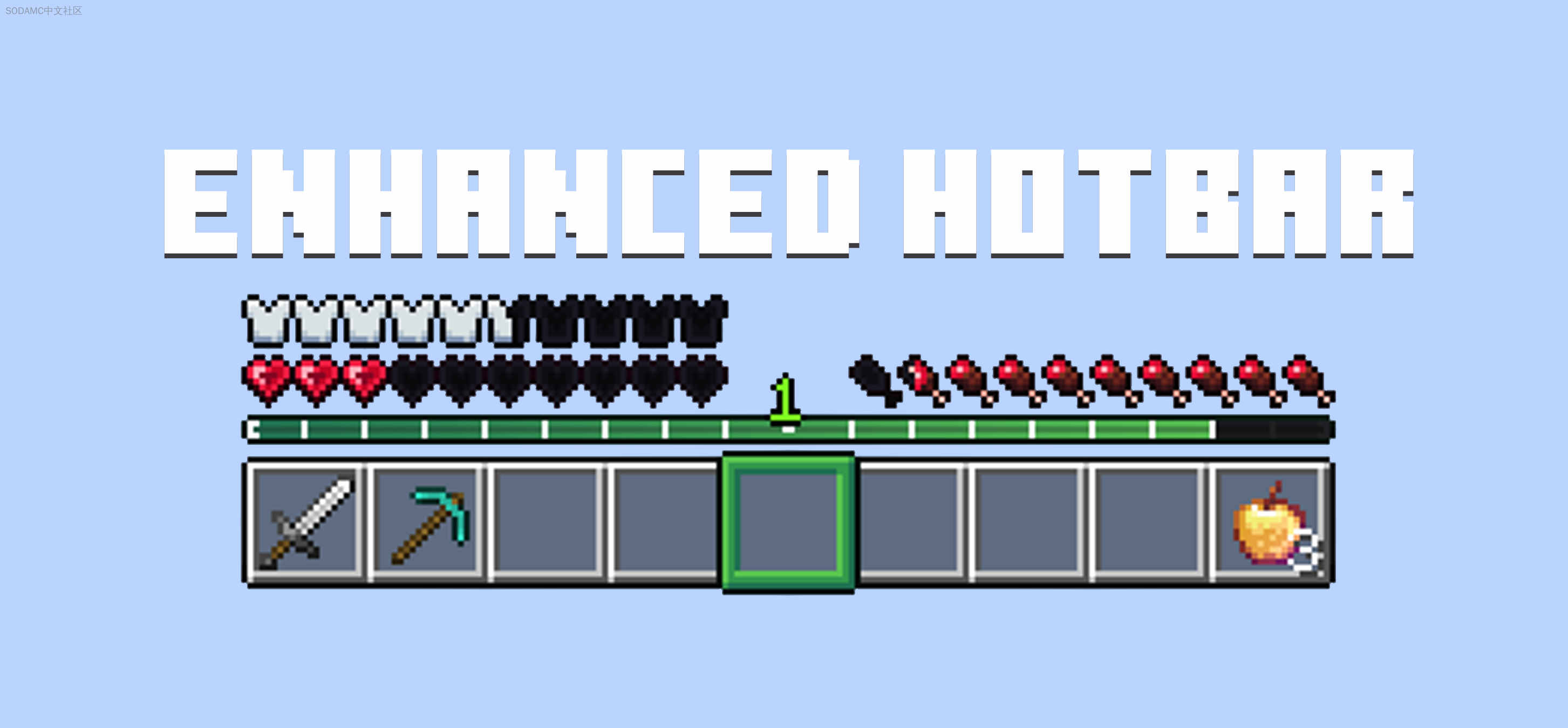 增强UI是一个纹理包,它改进了你的UI元素的整体外观以及热键栏的视觉效果!