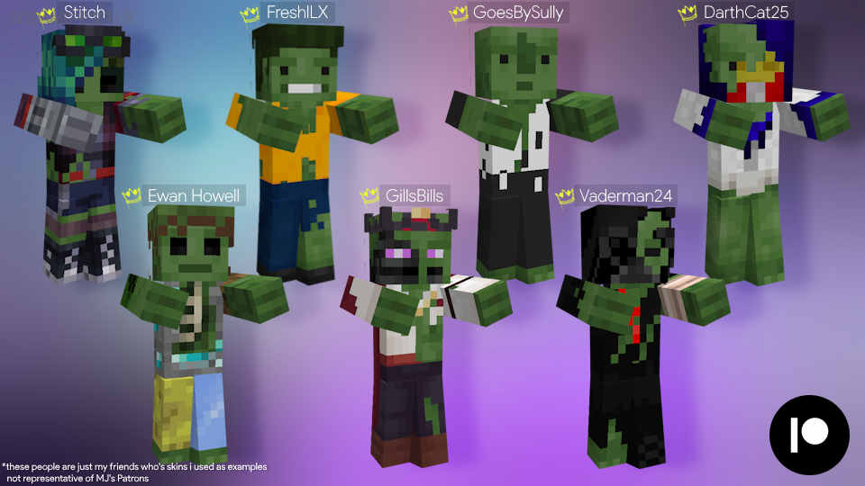 在我的Patreon上的Zombie Tier可以让您将您的皮肤添加到我的资源包中!...但有几个条件: