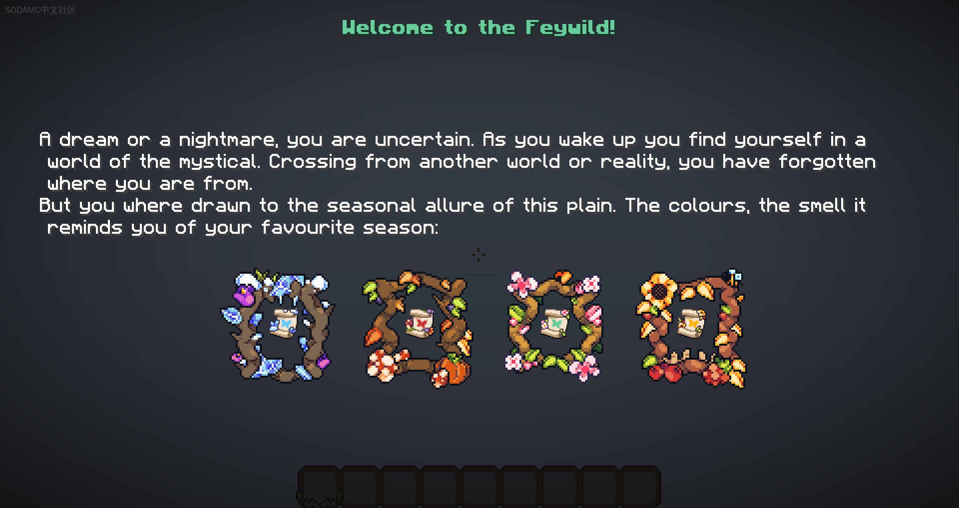 一位季节小精灵提供了一条任务线来引导你的旅程。飞越仙境拥有独特的任务系统,你可以与选择的小精灵互动,并她会为你提供任务线。你会愿意取悦妖精的奇想吗?你在开始旅程时需要与一位季节小精灵签订合同。你是召唤了小精灵,还是被她们欺骗了呢?夏天的小精灵想帮助你成为夏季法庭的新冠军,而冬天的小精灵希望你成为新的灵魂收割者。秋天的小精灵则希望你远离命运,安全而温暖地待在家中……春天的小精灵呢?她只是想玩耍。春夏秋冬的季节之力始终在争夺支配权。帮助妖精保护他们家园免受掠夺者的入侵,并征服他们的建筑物。