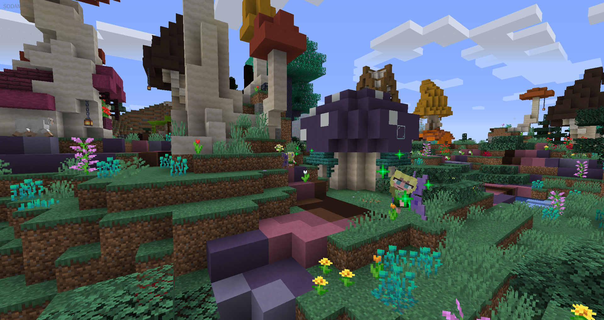 飞越仙境还拥有独特的任务线和精美的魔法模组集合,没有不必要的模组堆叠,而且各种模组的战利品和配方彼此交织在一起。生物群系和环境氛围经过调整,形成了一个魔法环境。此外,模组还包括了美丽的音乐,特制的仙境之歌和Vindsvept音乐包,集合了幻想和妖精生物。飞越仙境友好而热情,欢迎您的加入。