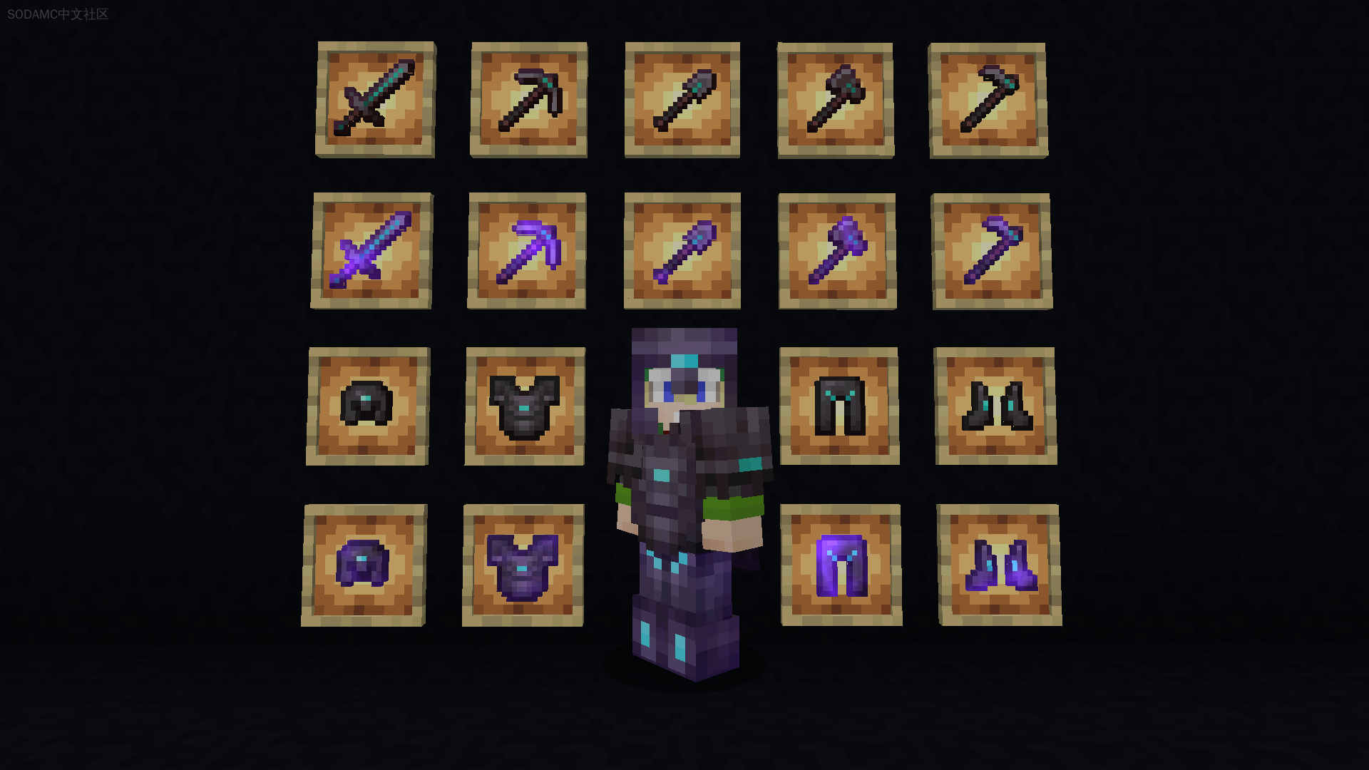 一个对基础下界合金材质(工具和盔甲)进行小改动的资源包,并包含主菜单全景图。