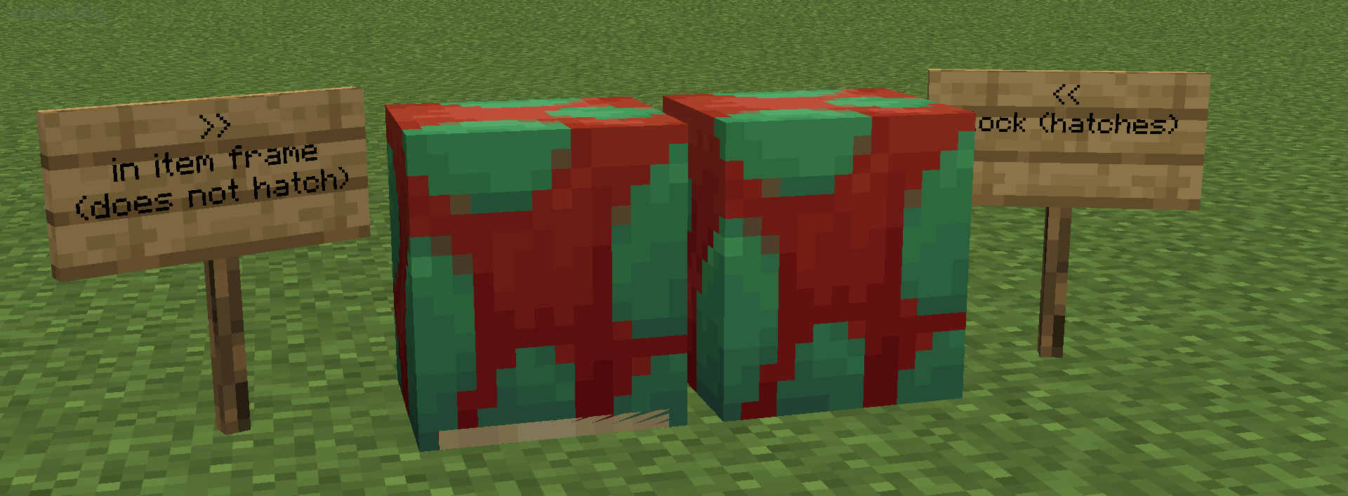 注意:嗅探兽蛋或海龟蛋必须放置在物品展示框中。它们没有碰撞体积,可以放置在墙上进行一些有趣的装饰。